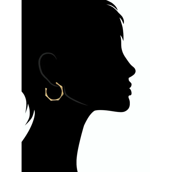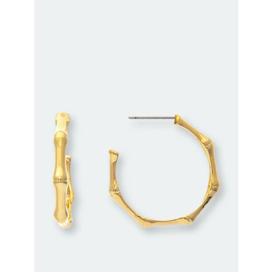 These rivka friedman 18k gold clad hoops feature a bamboo motif design and are made from polished metal. These hoop earrings are for pierced ears only and have post and clutch back closure.
