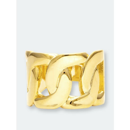 Rivka friedman 18k gold clad polished solid curb link chain motif band ring.