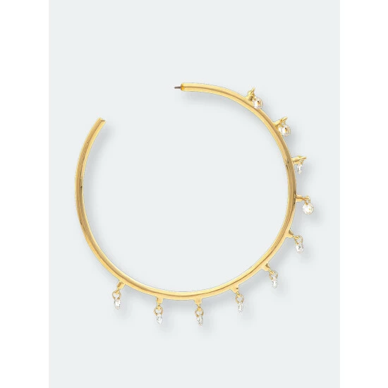 Rivka Friedman Cubic Zirconia Dangle Hoop Earrings Gold