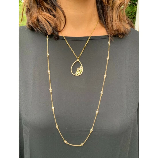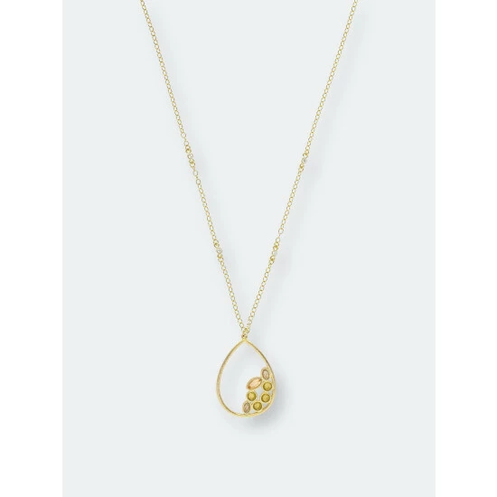 18K Gold Clad Satin Finish Peridot Crystal, Swiss Blue Crystal, Citrine Crystal Teardrop Necklace with Cable Chain and CZ Bezel Accents