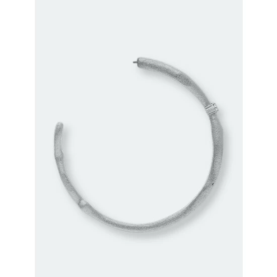 These Rivka Friedman White Rhodium clad hoop earrings feature a Bamboo design with Cubic Zirconia accents. These satin finish earrings are secured by post and clutch back closure and are for pierced ears only.White Rhodium Clad Bamboo Style Cubic Zirconia 3/4 Satin Finish Hoop Earrings