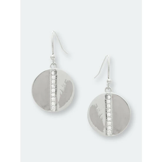 Rivka Friedman Rhodium Polished Cubic Zirconia Petite Disc Hook Earrings White Rhodium