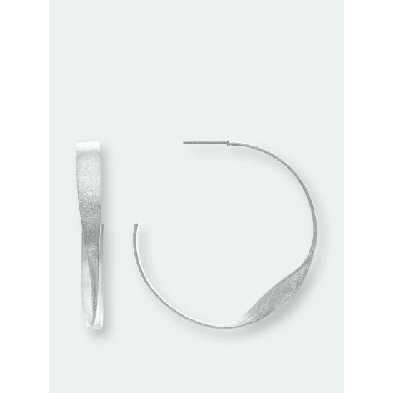 Rivka Friedman Rhodium Twisted Satin Hoop – 2″ Earrings Silver