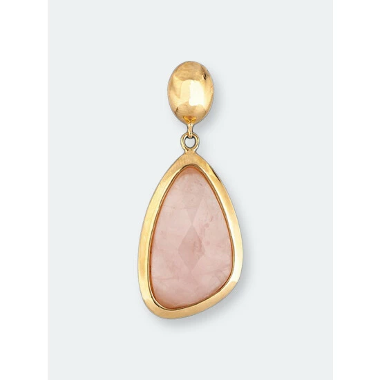 – Rivka Friedman 18k polished gold clad rose quartz drop earrings- Post + Clutch back- Measures: 2″ long
