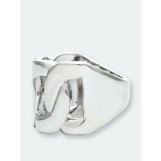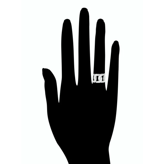 Rivka Friedman White Rhodium Clad Solid Curb Link Chain Motif Polished Ring Rings