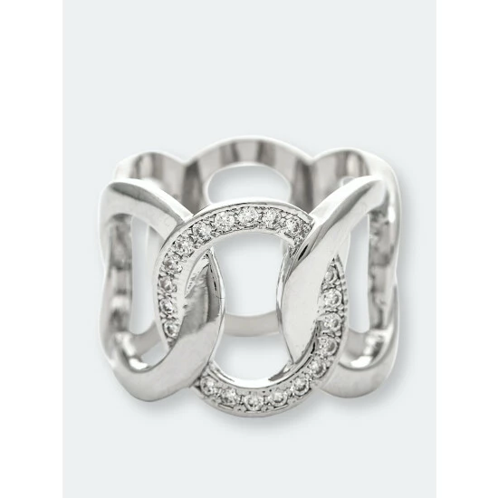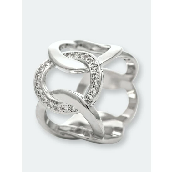 Rivka Friedman White Rhodium Interlaced Circle With Cubic Zirconia Accent Band Ring Rings Silver