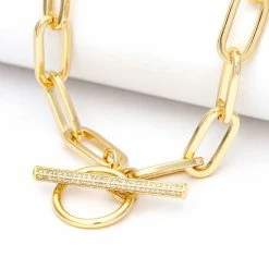 Rivka Friedman Pave Cubic Zirconia Lobster Clasp Necklace On Paper Clip Chain Necklaces Gold